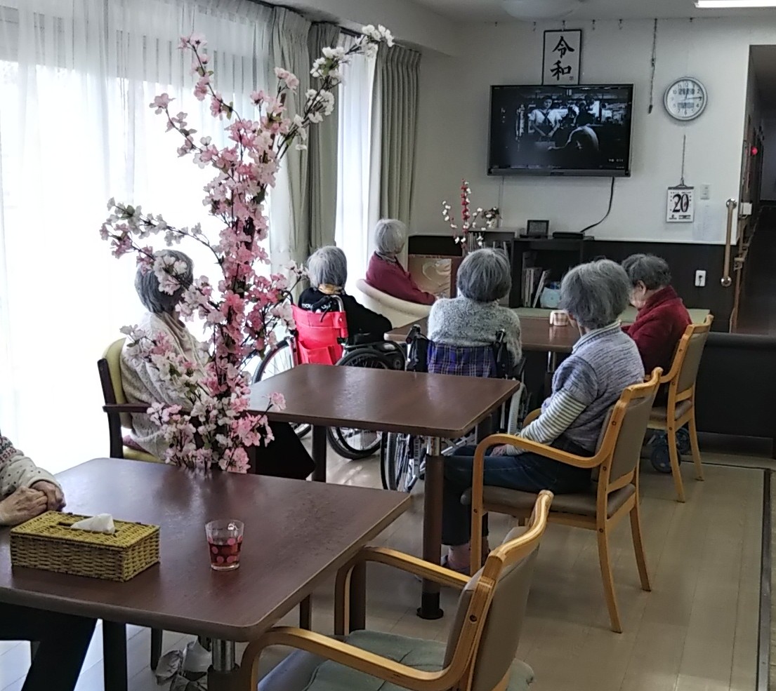 そんな飾りつけのまま、昼食後すぐに入居者様の提案で急遽「映画観賞会」の開催です。