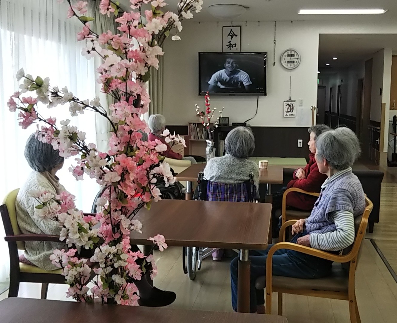 今日は突然でしたが2Fフロアでは職員の提案で梅と桜の飾り物を飾って皆さんで春を感じておられました。