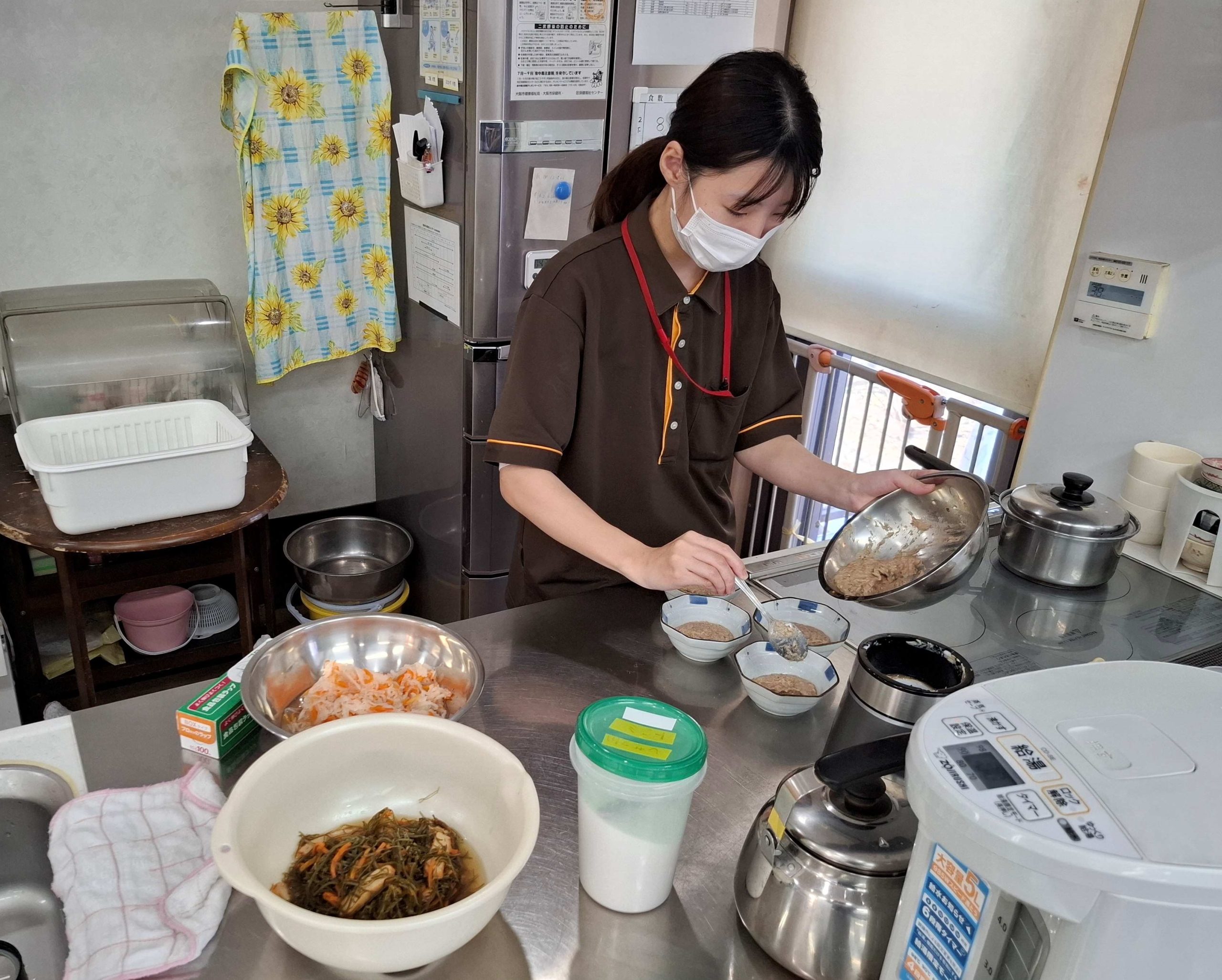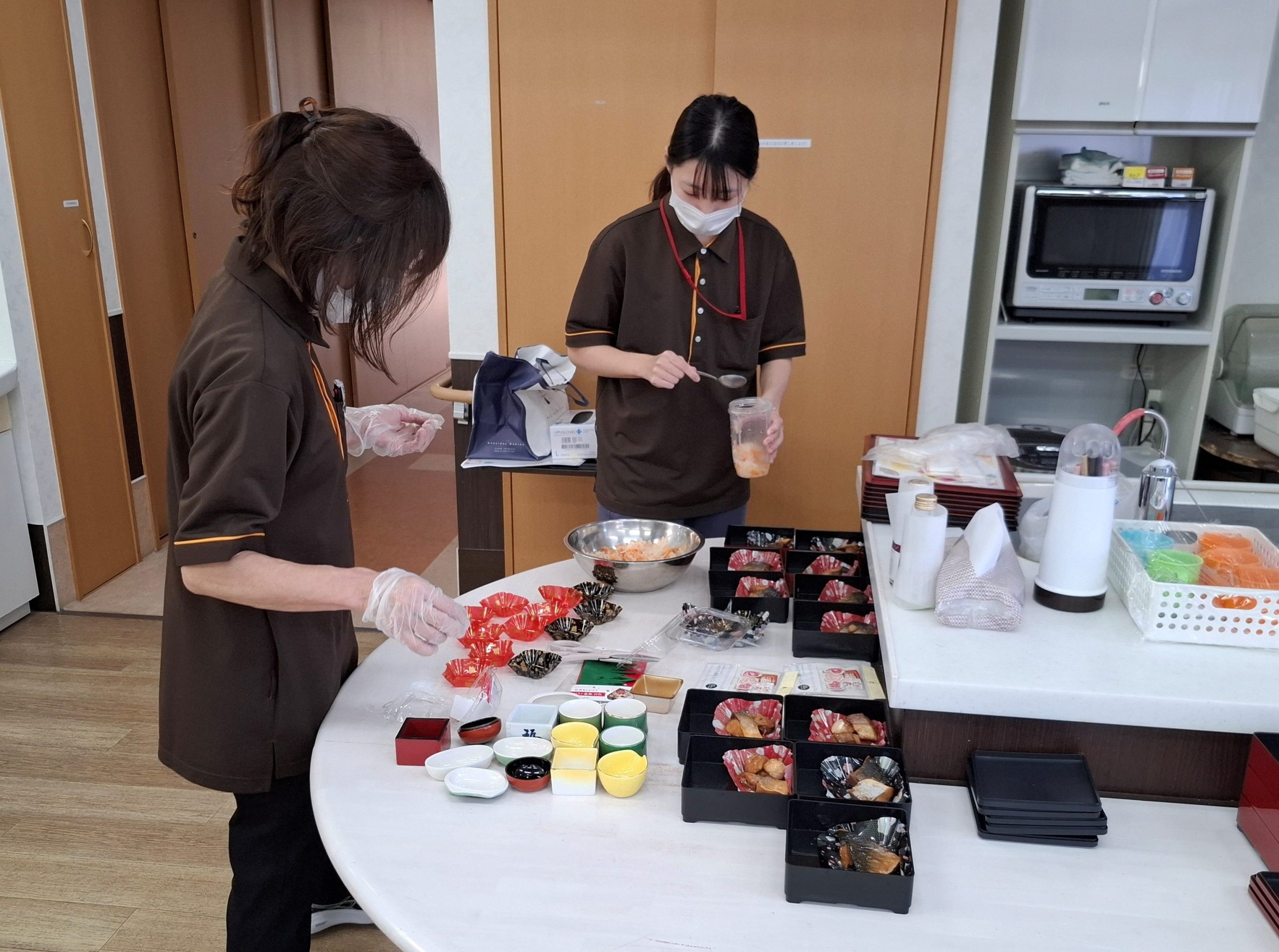 そして、その間に職員は入居者様全員分の昼食用のおせち作りを行っています。