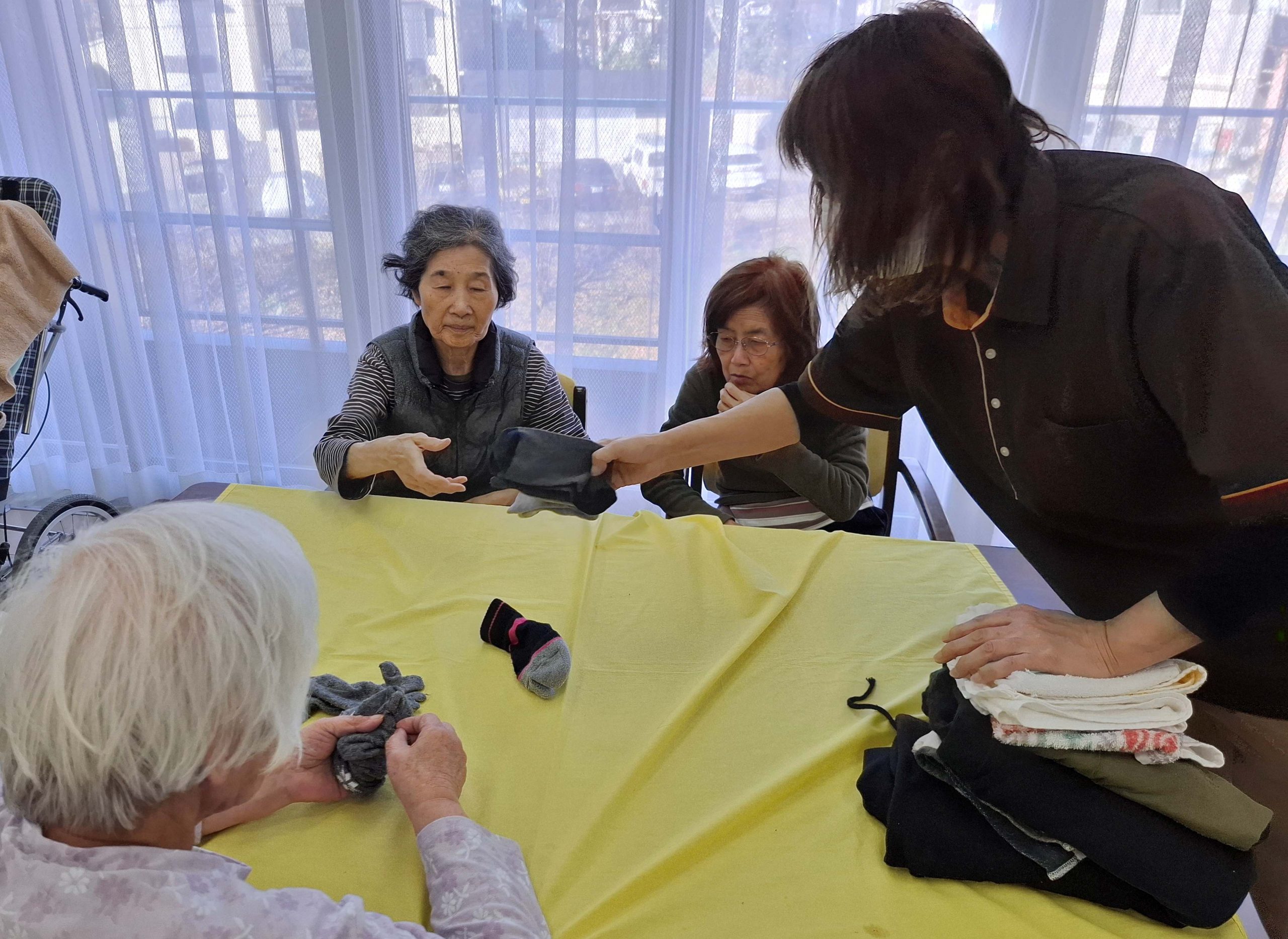 メイプル箕面のお母さま方は元日からよく働いてくださります。お洗濯畳をしていただきました。