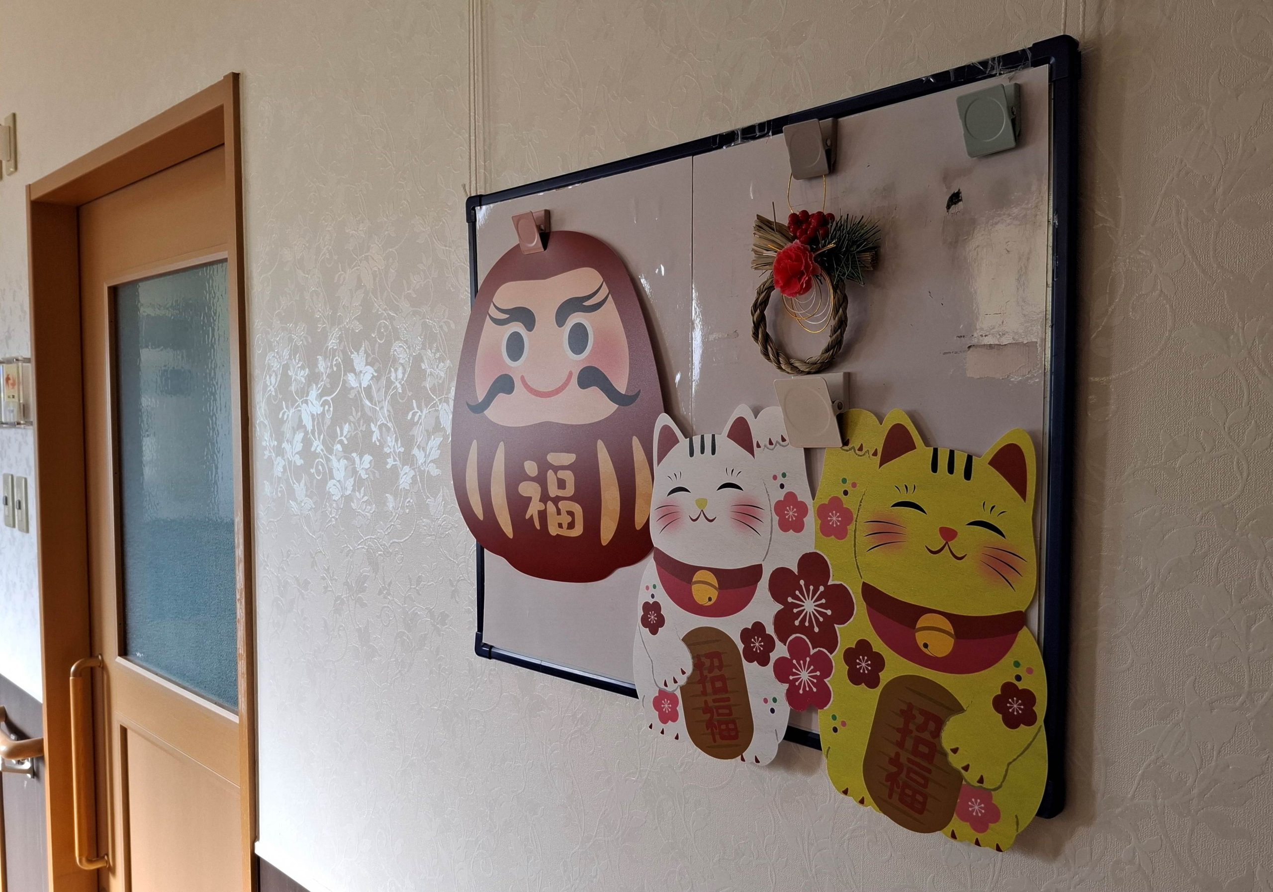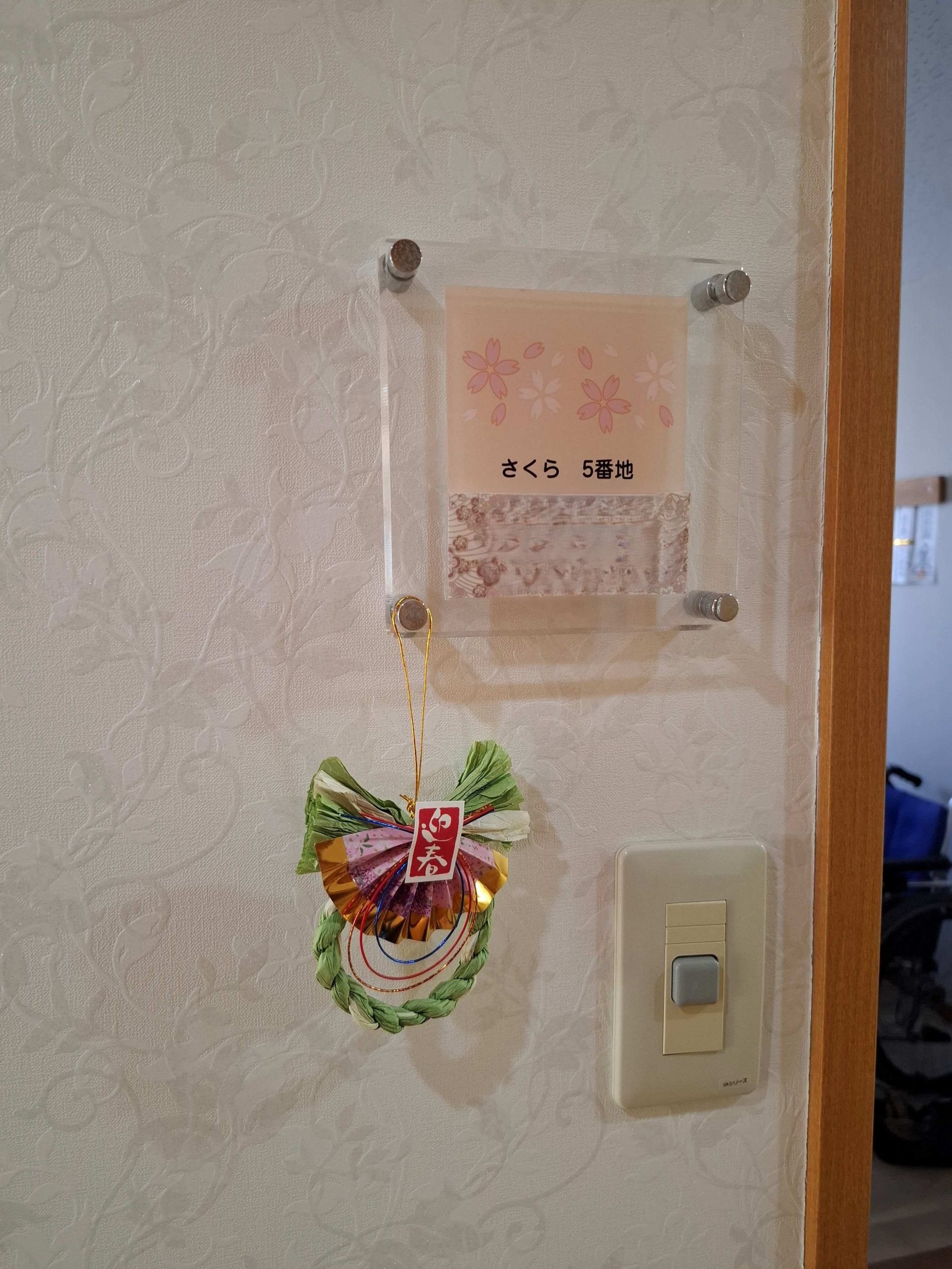 メイプル箕面では廊下にも正月飾りを施し、居室の表札も飾り付けをして新年を迎えています。